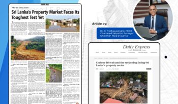 News Room Home>News Room Read More 19 December Newspaper Article (Virakesari 19th Dec 25) Sri Lanka’s Property Market Faces Its Toughest Test Yet News Read More 18 December Cyclone Ditwah and the reckoning facing Sri Lanka’s property sector Knowledge Sharing, News Read More 13 November Student Engagement Session 2025 Life Events, News Read More 22 October Inaugural RICS Young Members Forum (YMF) 2025 Knowledge Sharing, Life Events, News Read More 29 August RICS Sri Lanka Port City Visit Tour 2025 News Read More 11 July RICS Sri Lanka Industry Dialogue & Networking Forum 2025 News Read More 29 January RICS Sri Lanka Built Environment Summit 2025 News Read More 28 September Channel Eye නාලිකාවේ BUSINESS TODAY වැඩසටහනේදී වරලත් තක්සේරුවේදී ප්රතාපසිංහ මහතා කල සාකච්ඡාව Knowledge Sharing, Public Appearance Read More 19 September වාහනයක වටිනාකම තක්සේරු කීරීමේ ක්රමවේද සහ එය කලයුත්තේ කවුරුන් විසින්ද? Knowledge Sharing, Public Appearance Read More 19 September වෙළදපොලේ සමාන දේපොළ තිබේද? දේපොළ වටිනාකම් වෙනස් වන්නේ කොහොමද? Knowledge Sharing, News Read More 19 September තක්සේරුකරුගේ කාර්යය? Knowledge Sharing, Public Appearance Read More 19 September දේපල වටිනාකම තක්සේරු කීරීමේදී මිල ගණන් තීරණය කරන ක්රමවේද Knowledge Sharing, Public Appearance Read More 19 September දේපල වටිනාකම තක්සේරු කීරීමේදී සලකා බලන කරුණු Knowledge Sharing, Public Appearance Read More 18 September ඔබගේ දේපලේ වටිනාකම තීරණය කීරීම සහ තක්සේරු වාර්තාවක් ලබා ගැනීම අවශ්ය වන්නේ ඇයි? Knowledge Sharing, Public Appearance Read More 12 September ITN Business@25: Prathap Chartered Valuation’s Milestone Celebration Life Events, News, Public Appearance Read More 11 September ඔබ සතු දේපලේ වටිනාකම දැන සිටීම කොතරම් වැදගත්ද? Knowledge Sharing, Public Appearance Read More 11 September දේපල තක්සේරු කිරීමේ අවශ්යතාවය සහ එහි වැදගත්කම පිළිබඳ පුළුල් විග්රහයක් Knowledge Sharing, Public Appearance Read More 11 September ඔබගේ එදිනෙදා ජීවිතයට දේපොළ තක්සේරුකරණය වැදගත් වන්නේ ඇයි? Knowledge Sharing, Public Appearance Read More 2 September Inspiring Journey of Success | Prathap Valuers MD’s Message | Elegance in Achievement 2023 Life Events, News, Public Appearance Read More 19 August D. Prathapasinghe FRICS Interview: Life’s Journey | Sirasa TV | Jeevithayata Idadenna Life Events, Public Appearance Read More 12 August Proud Moment Alert! Our Remarkable Win on Sirasa TV’s Corporate Brief! Life Events, News, Public Appearance 0 Years of Experience 0 ProjectsCompleted 0 Happy Customers 0 SatisfiedClients Our Clients Says
